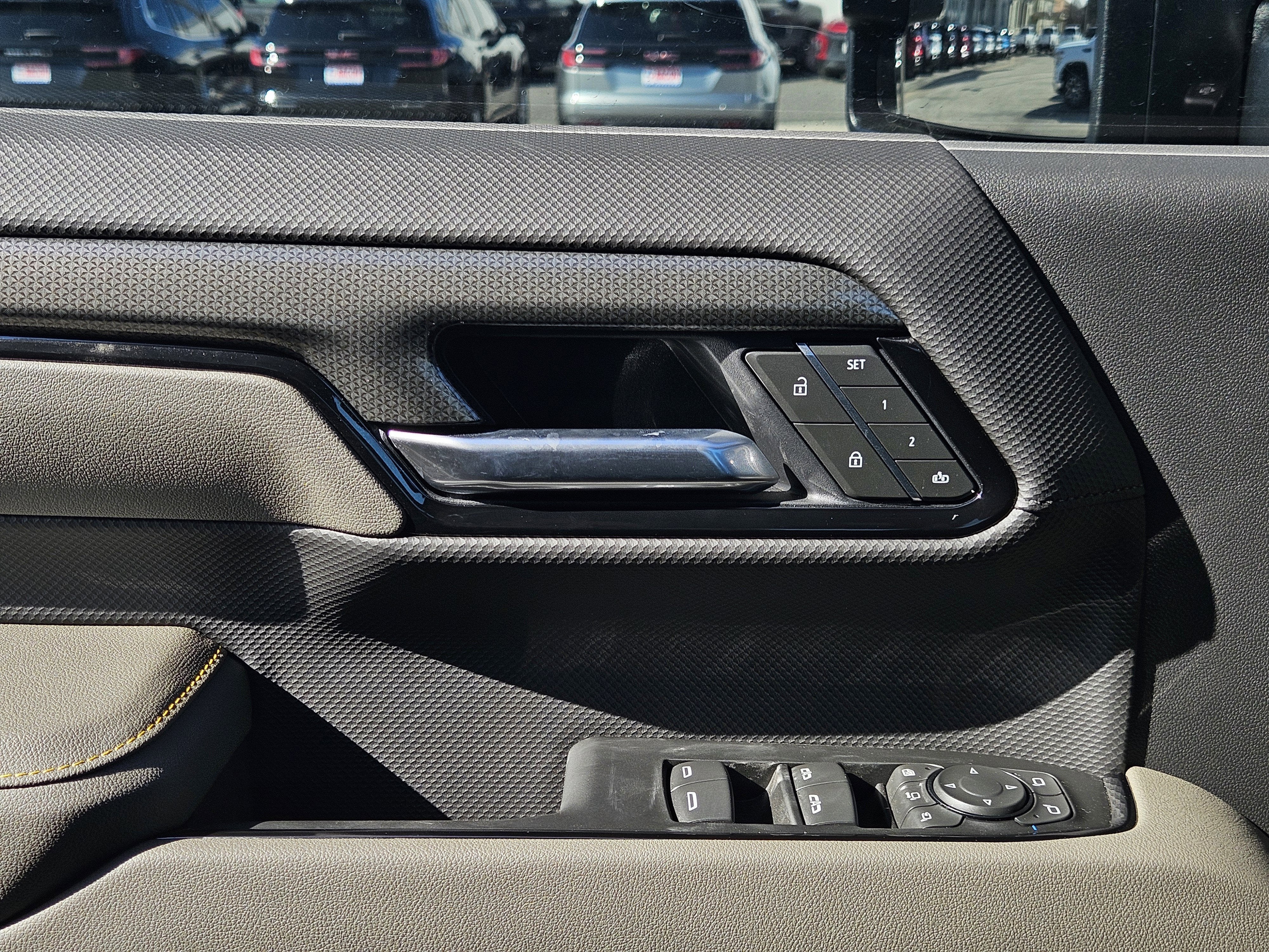 - Outside power-adjustable vertical trailering mirrors with power folding/extending auto-dimming driver and passenger upper glass